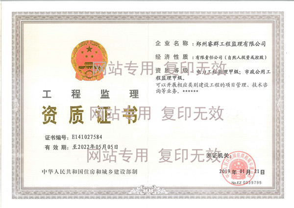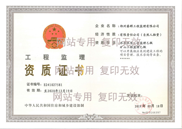 睿群工程咨询有限公司,拥有电力专项工程监理资质;同时具备市政公用工程监理、房建监理、水利水电监理、矿山监理、招标代理等资质;是河南省建设监理协会、中国建设监理协会、电力监理协会的会员单位。
