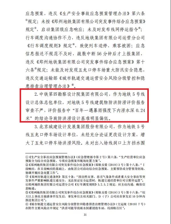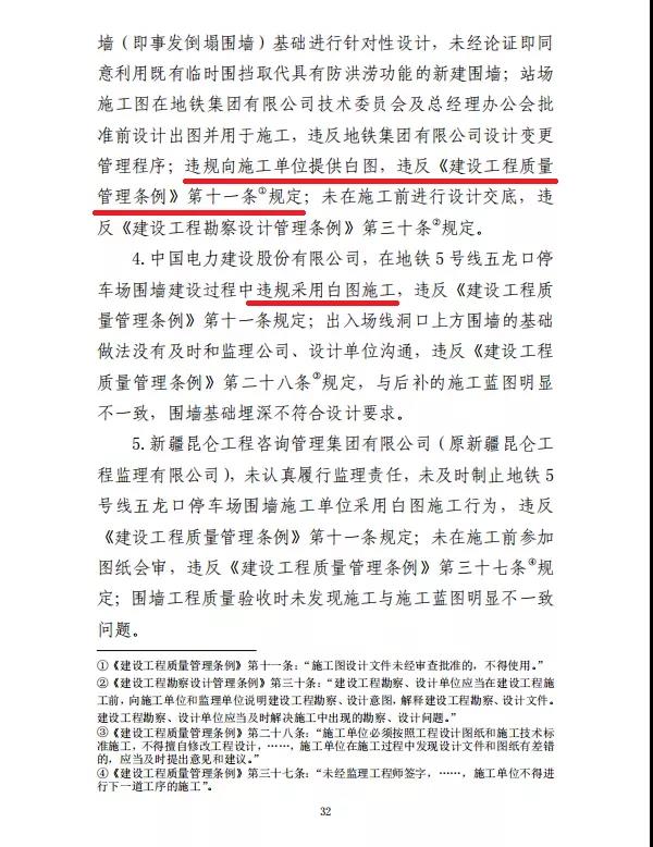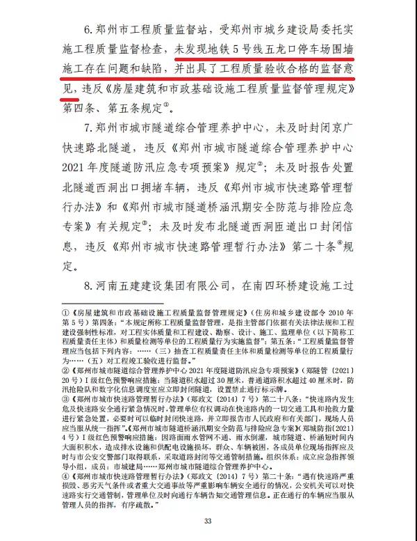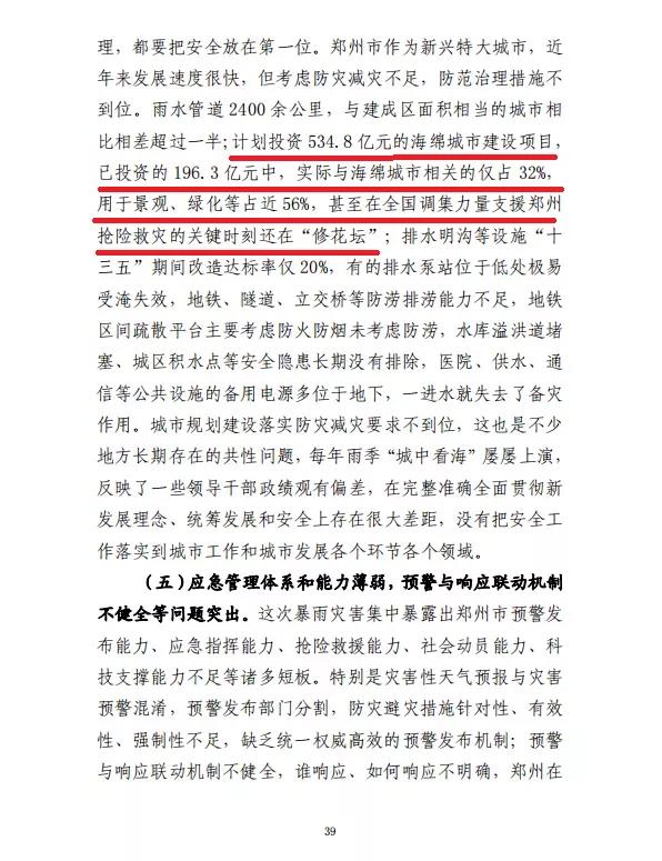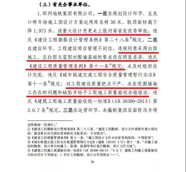 设计单位违规向施工单位提供白图,郑州地铁集团有限公司违规同意采用白图施工,施工单位违规采用白图施工,质监站未发现问题和缺陷,并出具了工程质量验收合格的监督意见。郑州市雨水管道仅2400余公里,196.3亿海绵投资,实际与海绵城市相关的仅占32%,用于景观、绿化等占近56%。