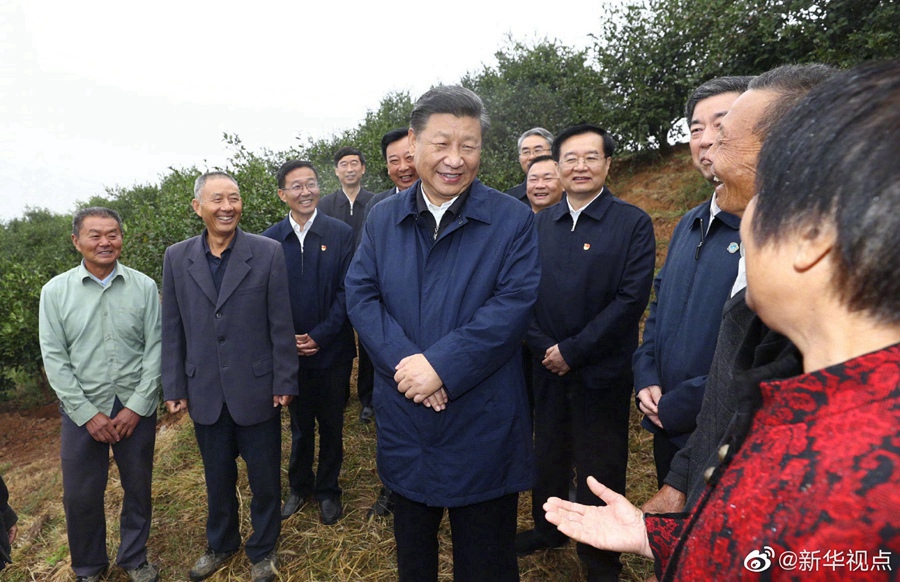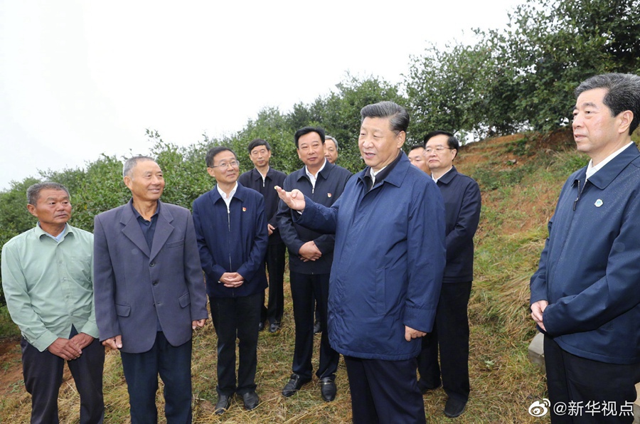 17日上午,正在河南考察调研的习近平总书记来到光山县司马光油茶园,察看当地产业脱贫工作成效。习近平冒着小雨走进万亩油茶园,同正在劳作的村民们亲切交流,细致询问怎么出工、工资多少、生活怎样。村民回答说现在脱贫了,生活天天像过年,习近平连声说好。习近平强调,种油茶绿色环保,一亩百斤油,这是促进经济发展、农民增收、生态良好的一条好路子。路子找到了,就要大胆去做。要通过“公司加农户”的方式,朝着市场化、规模化的方向发展,使公司和农民彼此受益。(文字记者:张晓松、朱基钗 摄影记者:鞠鹏、谢环驰)